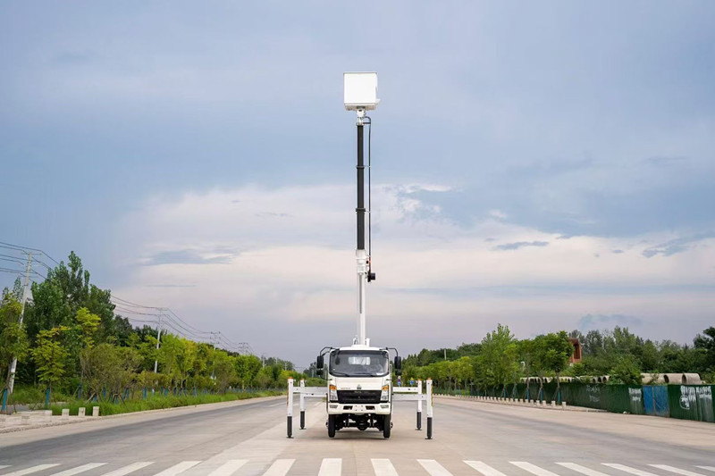 重汽豪沃17.5米高空車,出口到尼泊爾,旋轉機構后置,1.1米玻璃鋼吊蘭,十八邊形同步伸縮臂,360度連續回轉,前V后V型液壓支腿,單獨可調,無線遙控盒操作,下車液壓手柄操作